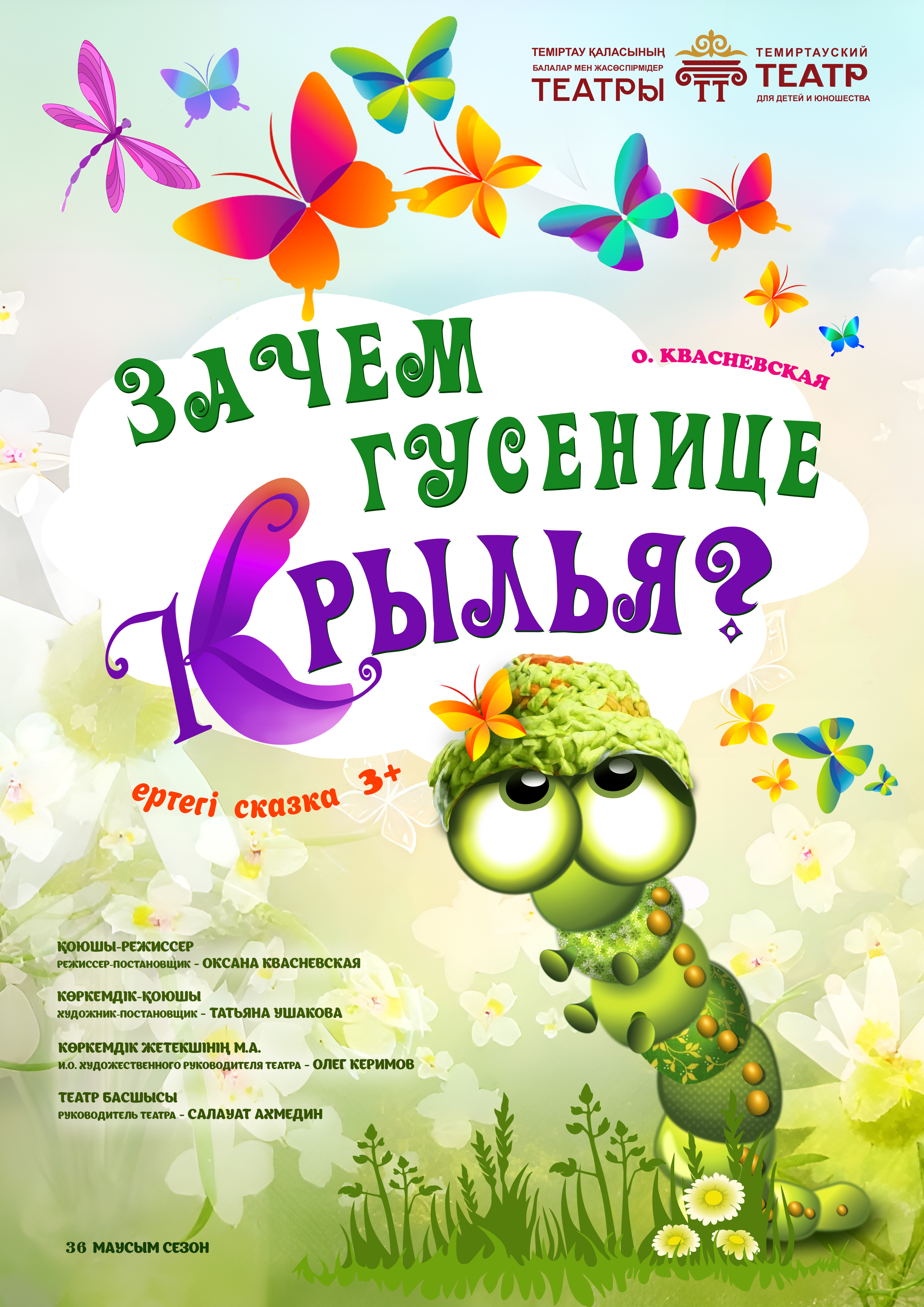 «Зачем гусенице крылья?» музыкалық қойылымы (авторы және режиссері — О.Квасневская, қоюшы-суретші — Т. Ушакова) көрермендерге қанаттар туралы армандайтын кішкентай жұлдызқұрт туралы әсерлі әңгіме айтты. Өз жолында кейіпкер әр түрлі алаңның тұрғындарымен кездеседі және өмірдің маңызды сабақтарын біледі: шыдамдылық, достық және өзіне деген сенім туралы. Бұл жақсылыққа толы ертегі балаларға (және ересектергеде) өмірдегі барлық нәрсе өз уақытында болатынын және армандай білсең, арманның күші барлығына өзі көмектесетінін үйретеді.
